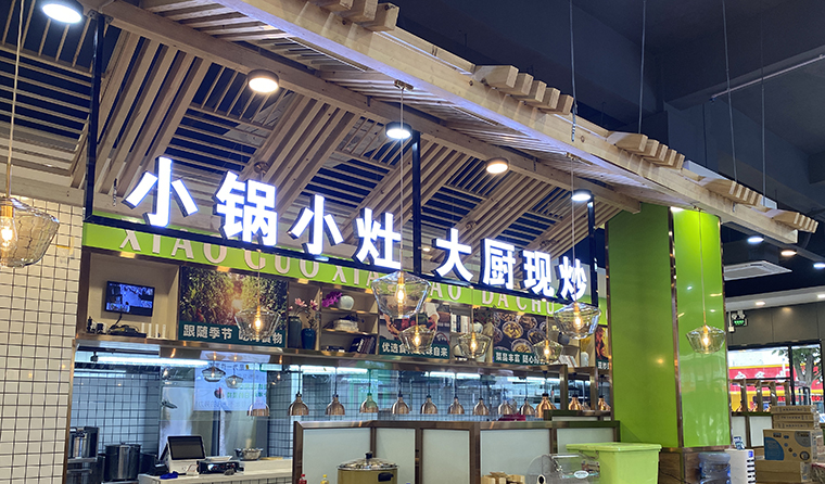 現(xiàn)炒快餐的概念,將廚房直接搬出來,所有的調(diào)味品,食用油都是用國內(nèi)知名品牌全部展示出來,當(dāng)著消費(fèi)者的面,讓消費(fèi)者直觀看見我們把菜品一份一份現(xiàn)場(chǎng)炒出來。當(dāng)新鮮的食材、美味的小炒冒著鍋氣,讓消費(fèi)者自己選,想吃什么選什么,想吃多少吃多少。做到了真正地“