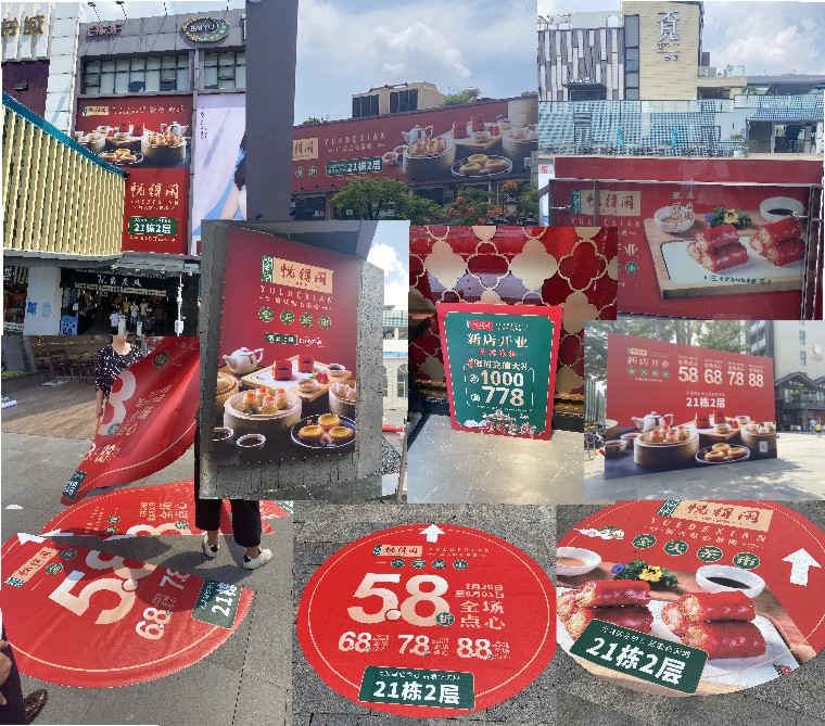 所有能做的觸點(diǎn)出發(fā)如:MALL(商場(chǎng)門口品牌墻、商場(chǎng)戶外廣告、地貼、電梯、樓層導(dǎo)視、電梯內(nèi)廣告、扶梯、吊旗、包柱、燈箱、墻體海報(bào)、刀旗、吊幔),網(wǎng)絡(luò)(大眾點(diǎn)評(píng)、微信、微博、頭條、抖音、小紅書、網(wǎng)站),大眾媒體(公交廣告、地鐵廣告、運(yùn)貨車、電梯廣告)等等進(jìn)行宣傳推廣,讓更多潛在客戶看到知道形成品牌記憶。