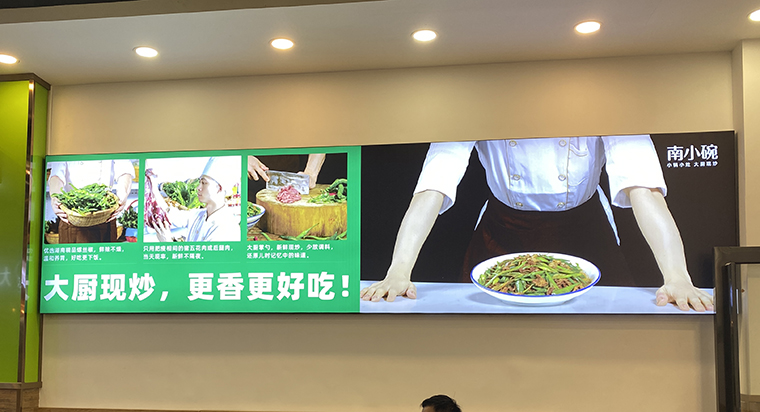 我們通過前期周密的市場考察和詳細(xì)的內(nèi)部調(diào)研,品深餐飲全案設(shè)計(jì)團(tuán)隊(duì)為南小碗提取了“小鍋小灶,大廚現(xiàn)炒”的核心訴求,并在門頭和店內(nèi)廣告畫面不斷重復(fù)強(qiáng)化“小鍋小灶,大廚現(xiàn)炒”小鍋小灶更有鍋氣,大廚現(xiàn)炒更好吃。并把食材原產(chǎn)地,和菜品制作過程在門店形象中不斷放大,重復(fù),讓消費(fèi)者記憶深刻。