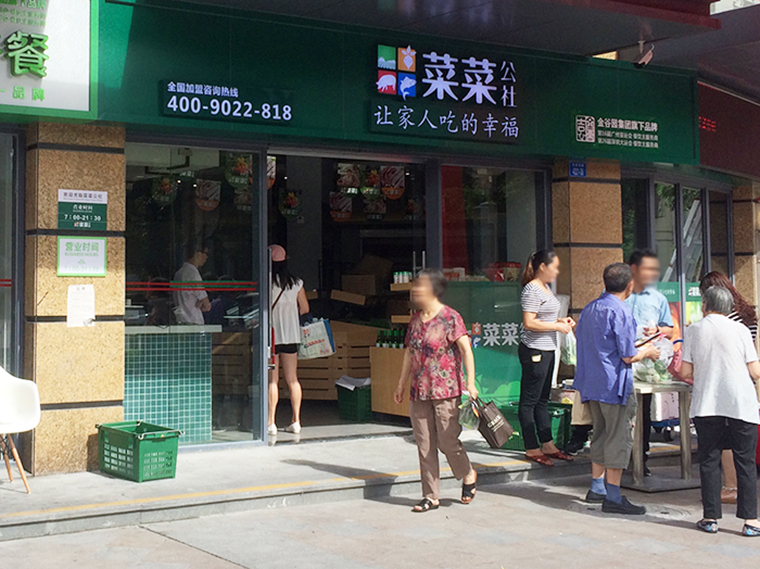 實際上,品牌就是消費者和企業簽署的一紙無形的社會契約,我選擇相信你,你向我提供品質擔保。如:菜菜公社的門頭設計,品深設計設計師在門頭下方加入金谷園集團旗下品牌+26屆深圳大運會餐飲主服務商等品牌信息,立刻讓消費者對菜菜鮮語品牌產生了好感。