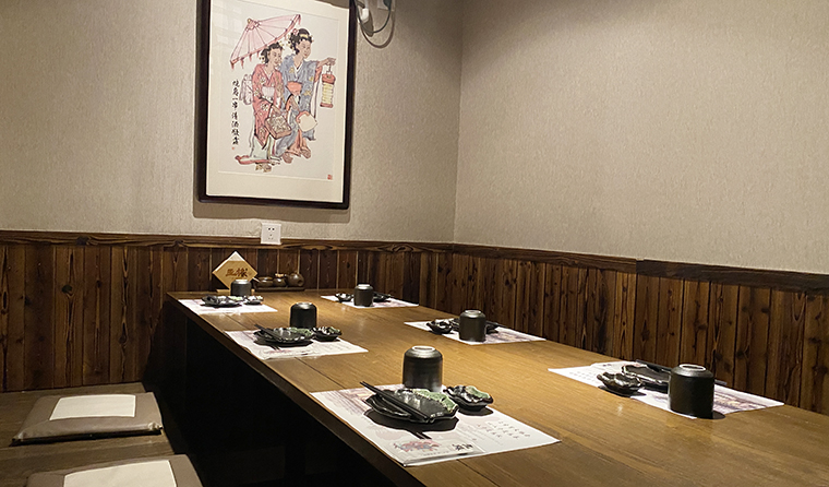 1樓是熱鬧區(qū),二樓則是私密區(qū),安靜區(qū),6個包間,其中3個包間設置為榻榻米結構,滿足一部分顧客對日本料理飲食文化的追求,另外3個包間則使用了中式座椅,畢竟我們服務的絕大部分客人是中國人,還是要以中國人的使用習慣為主。2樓的2個大包間中間使用折疊門,可大可小,可以滿足了周邊客人中一些商務宴請,企業(yè)團建,小型會議的用餐需求,包間消費也容易把營業(yè)流水做起來。