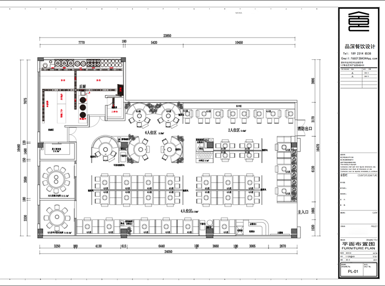 總面積330平,餐區面積265平,后廚面積65平