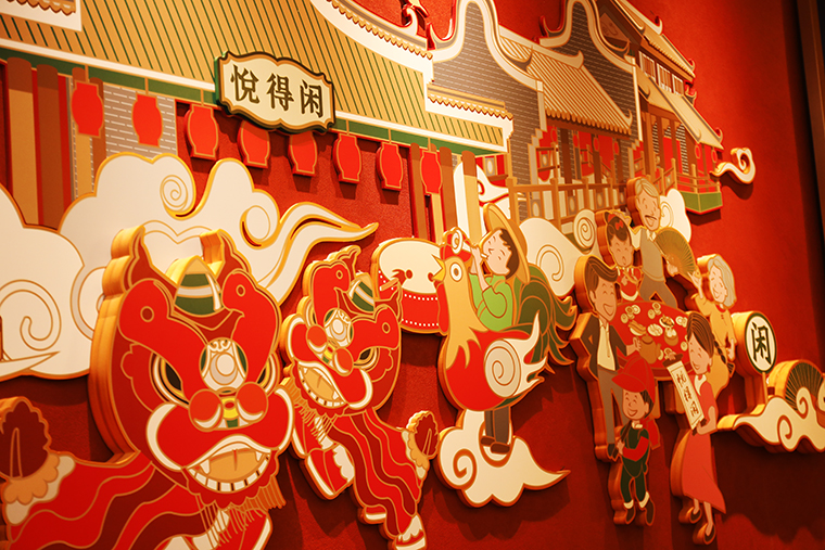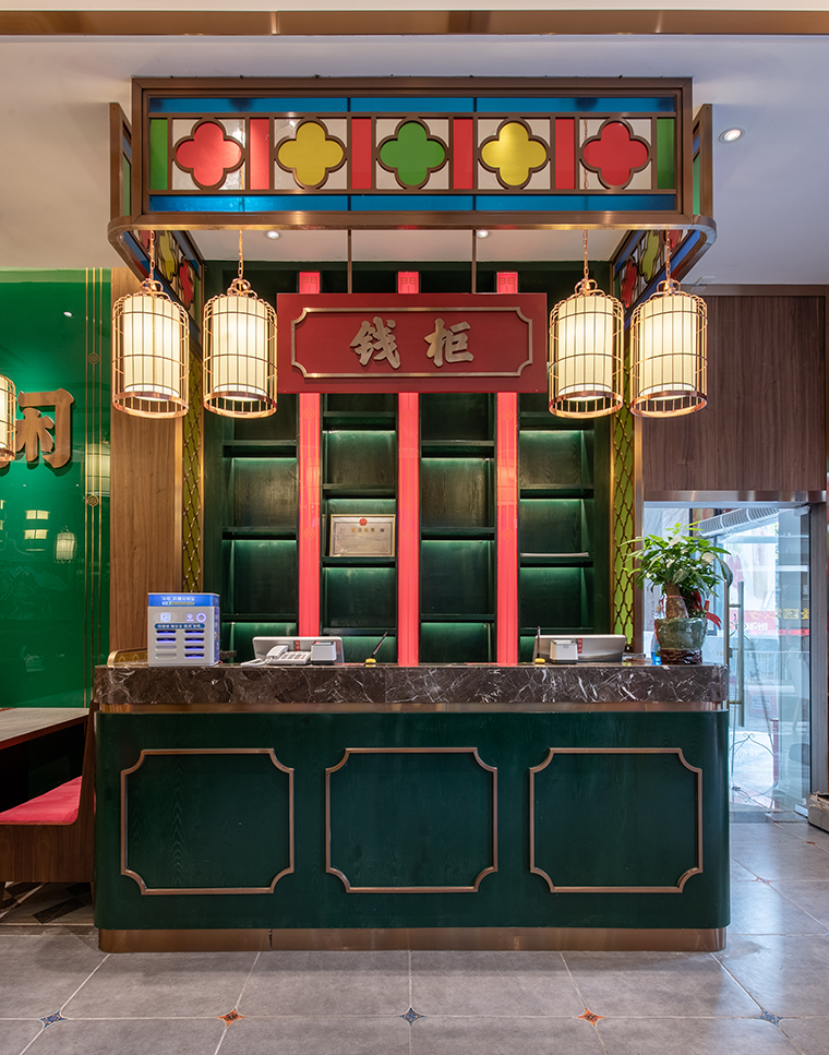 品牌記憶點:嶺南園林鑊耳山墻+西關(guān)廣式花窗+大紅+深綠+玫瑰金